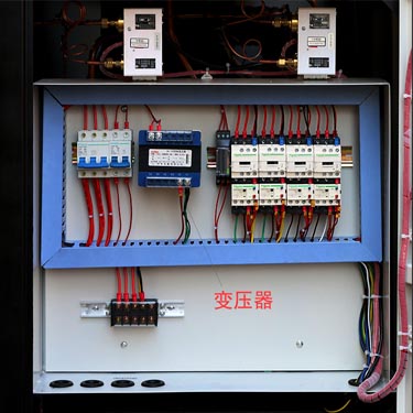 1)BKLS-F120T風(fēng)冷箱式工業(yè)冷水機組是專為使用地電源要求是三相480V、60HZ而定制的冷水機組,系統(tǒng)采用變壓器來實現(xiàn)電壓的轉(zhuǎn)換。