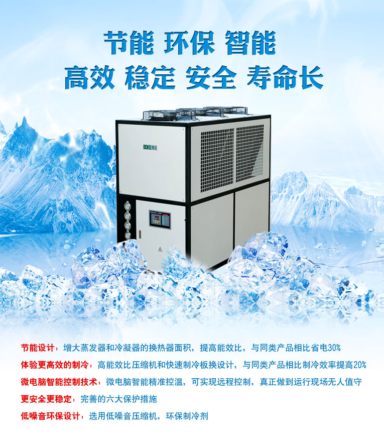 博克整合世界知名供應(yīng)商資源訂購每個機組部件,確保整機高品質(zhì)高性能,是您值得信賴的冷水機生產(chǎn)廠家。冷水機高效節(jié)能,操作方便,使用壽命長達10年以上,廣泛應(yīng)用于塑膠、電子、機械、鑄造、包裝印刷、化工醫(yī)藥、實驗、食品、養(yǎng)殖、電鍍、激光、冶金、建筑、環(huán)保等行業(yè)。